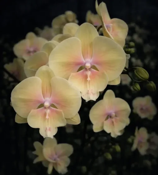 The Phalaenopsis Younghome Walle – Blooming Size is a graceful moth orchid admired for its soft buttery-yellow petals gently blushed with a delicate pink center. Its pastel tones and smooth, rounded blooms create a calm and elegant presence, perfect for refined interiors and modern décor.