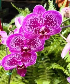This hybrid phalaenopsis has dark pink flowers with red white patterns on its petals. This variety is known for its capability to produce multiple long spikes of flowers. This an easy to flower hybrid Phalaenopsis that requires less care.