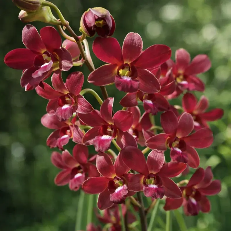 Rich burgundy-brown orchid blooms