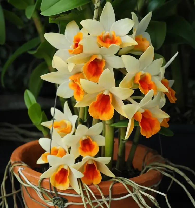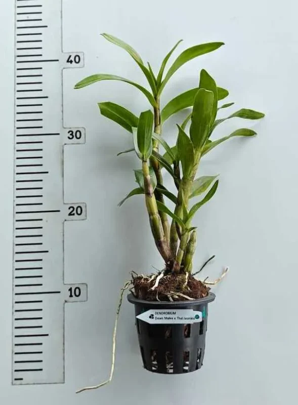 Dendrobium Dawn Maree x Thai Jasmine is a beautiful hybrid orchid admired for its graceful creamy-white petals and warm orange-red lip. This ready-to-flower size plant offers instant charm with elegant blooms that combine softness and vibrancy in perfect balance. Its refined hybrid form makes it ideal for orchid collectors, premium gifting, and stylish indoor or shaded outdoor displays.
