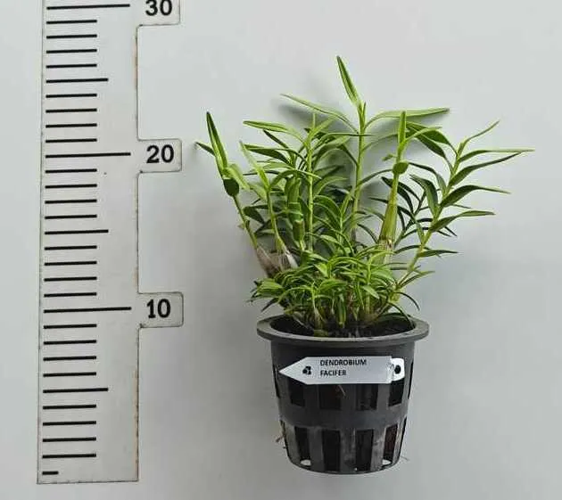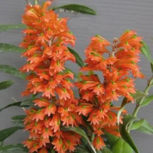 Dendrobium Faciferum is a striking species orchid admired for its tall, dense spikes of fiery orange blooms arranged in a dramatic vertical display. This ready-to-flower size plant delivers an immediate tropical impact, making it a prized addition for collectors who appreciate bold, species-type Dendrobiums. Its vivid coloration and architectural form create a powerful statement in any orchid collection or display area.