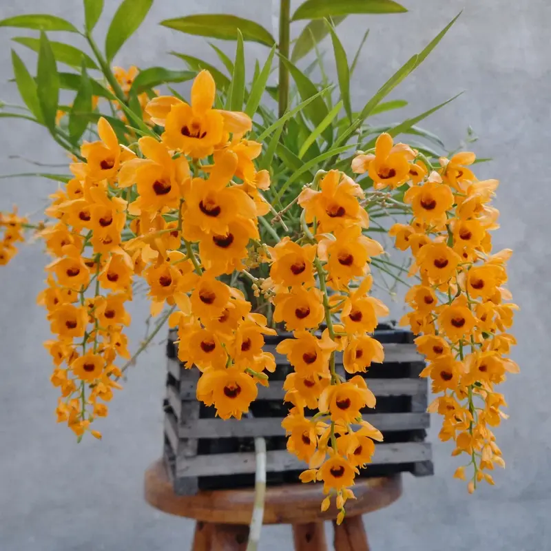 Native to Asia, including regions of India, Southeast Asia, and the Himalayas, Dendrobium fimbriatum is appreciated by orchid collectors for its vivid color, elegant flower spikes, and ornamental appeal.