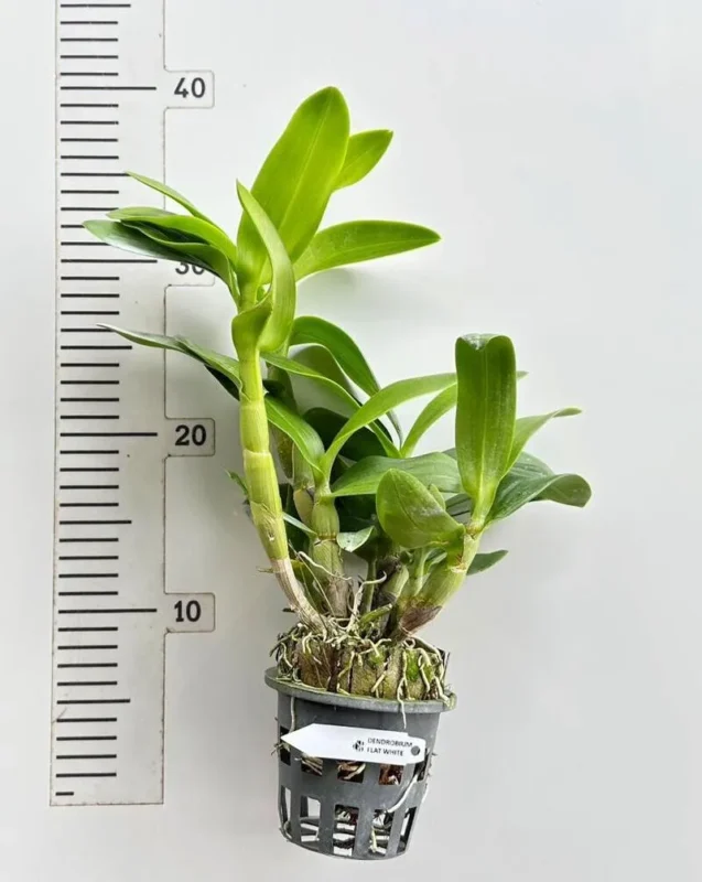Dendrobium Flat White is valued by orchid enthusiasts for its elegant white blooms, compact growth habit, and ability to create a clean and sophisticated floral display.