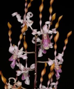 This is a cross between two dendrobiums Dendrobium Jairak Twist and Dendrobium tangerinum. They are also called twisted petal dendrobiums or antelope denrobiums. The petals resembles horns of antelope and hence the name, A rare hybrid but easy to give flowers.