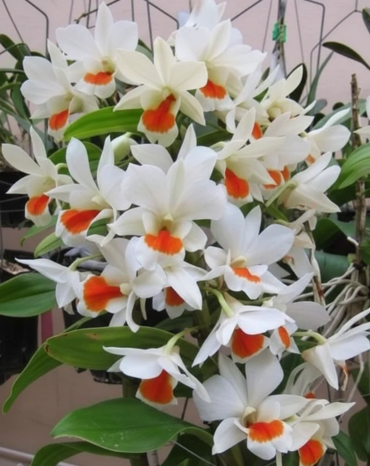 Creamy white flowers with bright orange lip