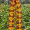 When in bloom, this orchid produces multiple blossoms along upright canes, forming dense clusters of colorful flowers. The bright yellow center resembles the glow of a sunrise, which gives this orchid its name “Morning Sun.”