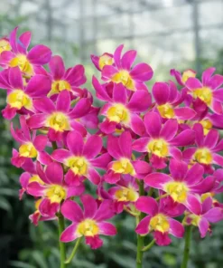 The Dendrobium Morning Sun – Ready to Flower Size is a vibrant orchid hybrid admired for its radiant color combination and elegant blooms. The flowers display rich pink to magenta petals highlighted by bright yellow centers, creating a warm and eye-catching contrast.