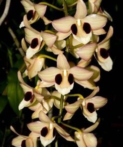 This dendrobium orchid species completely different from all the other dendrobiums. Dendrobium pulchellum produces large, showy flowers that are typically cream-colored or pale yellow with a distinct purple or maroon center.