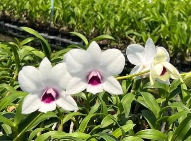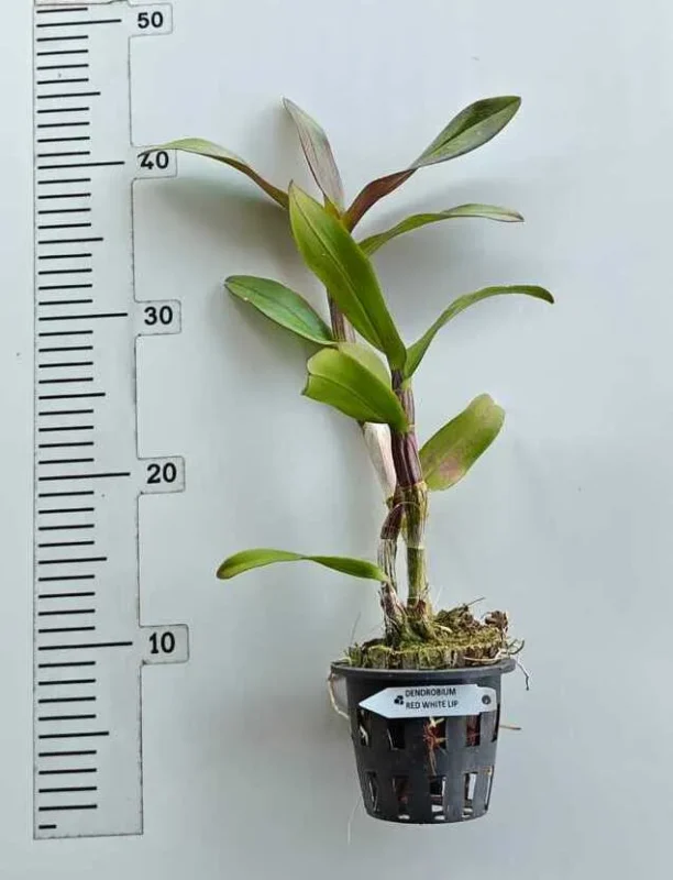 Dendrobium Red White Lip is a classic and elegant orchid variety known for its pristine white petals highlighted by a bold red-purple lip. This ready-to-flower size plant offers instant beauty, producing clean, graceful blooms that stand out beautifully against lush green foliage. Its timeless color contrast makes it perfect for home décor, gifting, events, and orchid collections.