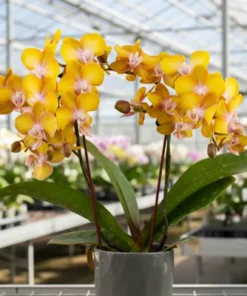 Meet Phalaenopsis PP630, a standout moth orchid prized for its sun-kissed golden petals and soft pink lip that glows in natural light. Medium-sized blooms arrive on elegant, well-supported spikes, creating a full, premium look right out of the box. Each plant is greenhouse-raised for strength, vigor, and long-lasting display.