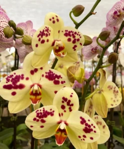 This is blooming stage big size matured phalaenopsis orchid plant. This plant will be delivered bare-root without flower buds or spikes. Please see the average size of the plant you will be getting.