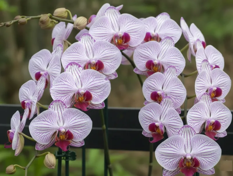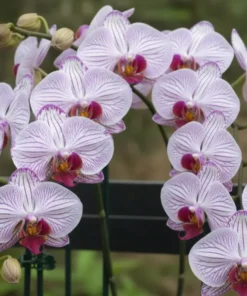 Introducing Phalaenopsis PPM45, a designer “pinstripe” hybrid prized for its crisp white petals etched with magenta veining and a bold fuchsia lip highlighted by warm amber tones. The refined symmetry and high contrast make PPM45 a natural centerpiece for living rooms, offices, and boutique displays.