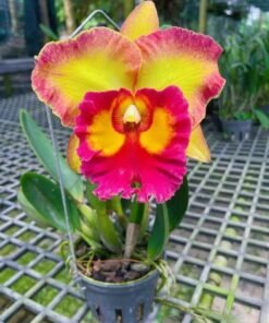 Rhyncholaeliocattleya Chomthong Fancy is a hybrid orchid cultivar that was created by crossing three different orchid genera: Rhyncholaelia, Laelia, and Cattleya. It is known for its stunning, vibrant blooms that come in various colors, including yellow, orange, pink, and red.