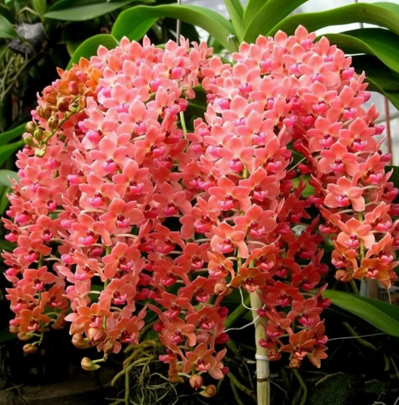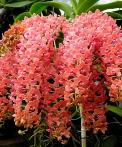 Foxtail RG Orange (Rhynchostylis gigantea) is a premium foxtail orchid admired for its dense, pendulous spikes of warm peach-orange to tangerine blooms. This ready-to-flower size plant delivers instant visual impact, producing thick, show-quality foxtails that drape gracefully. Its glowing orange tones and classic foxtail form make it a standout centerpiece for collectors and elegant orchid displays.