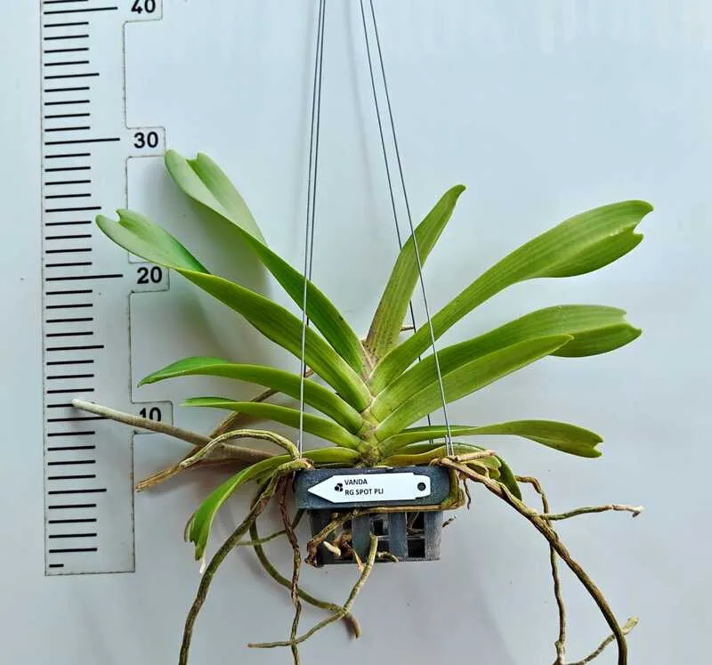 Rhynchostylis RG Plai Spot Foxtail is a premium foxtail orchid prized for its dense, cascading spikes of pink blooms intricately patterned with bold magenta spotting. This blooming size plant produces thick, show-quality foxtails that create a lush, luxurious display. The striking spotted pattern and classic foxtail form make it a standout centerpiece for collectors and elegant orchid décor.