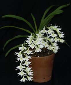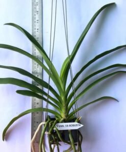 This is a matured fragrant variety of Sobennikoffia Robusta  Vanda and will be delivered in pot. This is a blooming size plant. This vanda is easy to grow and can be grown in all types of climate. Flowers are white in color and turns yellow as it ages. Flowers are fragrant in nature. Size of the flowers are 6 cm across and 5 cm tall and have sepals and petals that are recurved, especially at their tips.