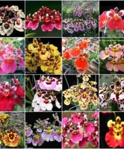 This is a pack of 16 numbers of flowering size miniature tolumnia orchid plants of all different colors as shown in the image. Each plant cost is Rs180 each Please check below the image for the average size of actual plants you be getting. They will be delivered with pots.