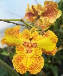 Zelemnia Midas is a bright colored yellow Oncidium intergeneric hybrid between two species Tolumnia Red Belt and Zelenkoa onustum. This is a miniature orchid plant that remain short in size. Please see the average size shown below. Flowers are full, round yellow with red freckles. They can be grown very similar to tolumnia and prefers to be wood mounted.