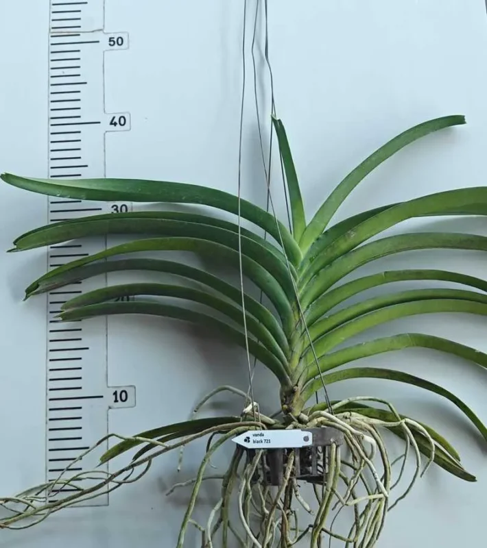 Vanda Black 721 is an exceptional and highly sought-after orchid admired for its deep purple to near-black flowers densely covered with dramatic spotting. The blooms have excellent substance and a rich, velvety appearance that gives this Vanda a powerful and luxurious presence.