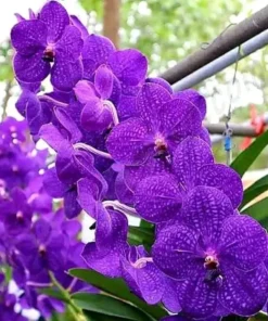Turn heads with Blue Vanda 655, a show-stopping Vanda hybrid famed for its rich cobalt-purple blooms and distinct tessellation (net-like patterning) on every petal. This is a blooming-size plant selected for strong roots and vigorous growth—perfect for hanging displays, balconies with bright light, or a sunny window that gets plenty of airflow.