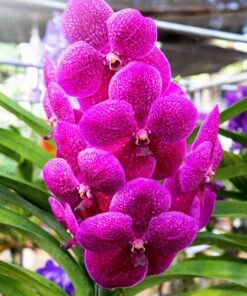 This vanda is known for its lovely light pink tessellations on the flower with reddish spot on each petals. This vanda seedling is a cross between two different species  called Vanda Kulwadee Fragrance and Vanda Kasems Delight.