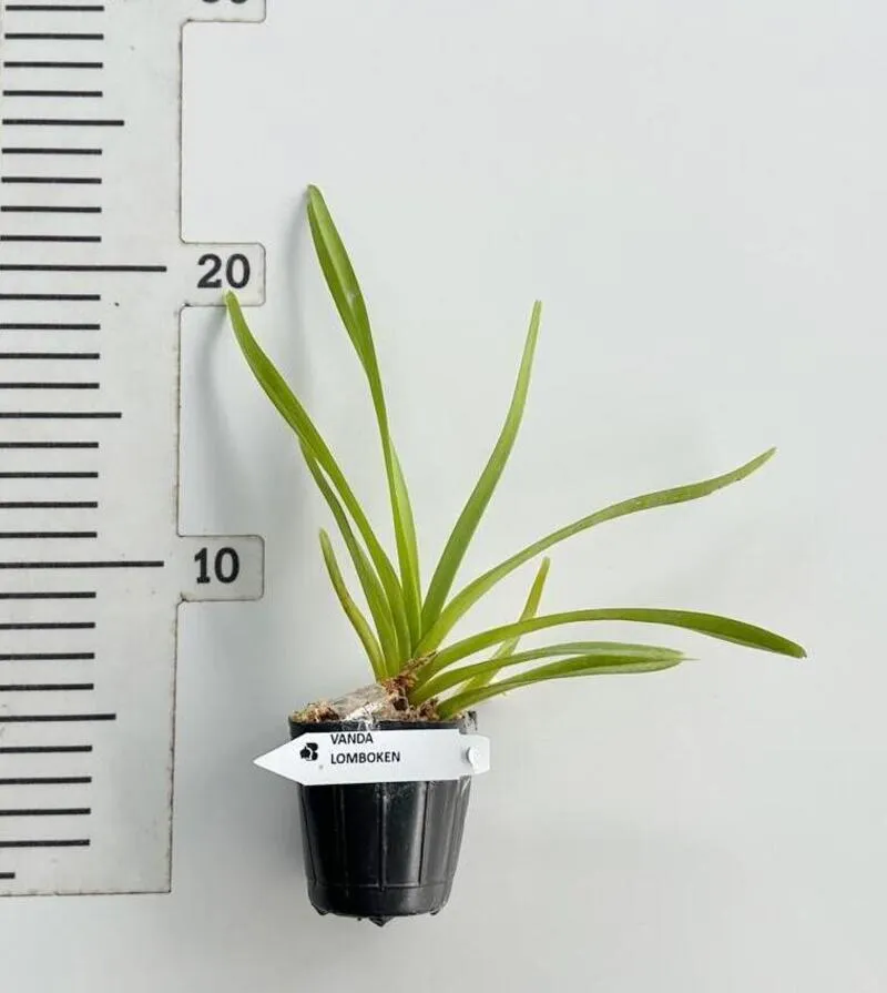 The Vanda lombokensis – Blooming Size is a rare and fascinating orchid species admired for its intricate spotted flowers and exotic appearance. The blooms feature creamy white petals densely covered with red to brown spotting, creating a distinctive leopard-like pattern.
