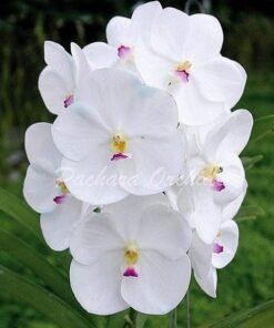This hybrid vanda has white large flowers. This is a frequent bloomer and easy to care vanda orchid plant.