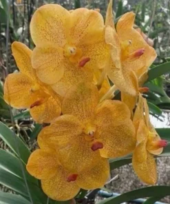 Bring home a ray of sunshine with Vanda Yellow Spot 646. This standout hybrid displays warm golden petals peppered with delicate red spotting and a contrasting rosy lip—a colour combo that lights up balconies, patios, and bright indoor spots. Each plant is blooming-size and hand-selected for vigorous roots, ready to establish quickly in baskets or mounted culture.