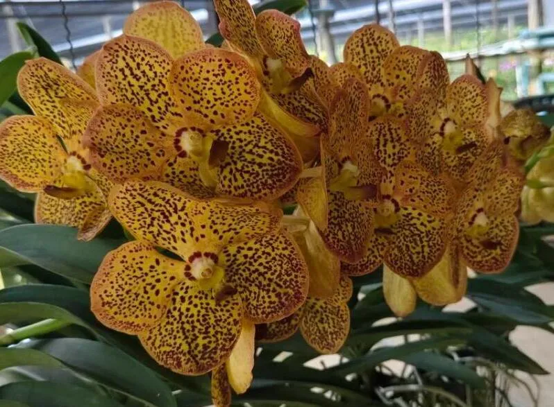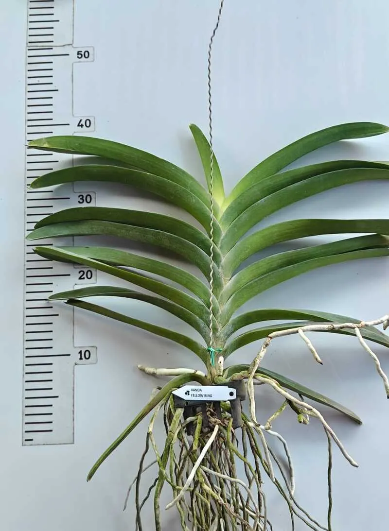 Vanda Yellow Ring is a vibrant hybrid orchid admired for its rich yellow blooms and clean, rounded flower shape. The flowers display excellent substance and uniform color, creating a cheerful and eye-catching display typical of high-quality Vanda hybrids.
